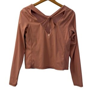 Athleisure, yoga top, Pilates wear, activewear, fitness top, twist back, performance long sleeve, studio style, minimalist athletic, gym top, ballet-inspired, sporty chic, ribbed active top, dusty rose, blush pink, Sweaty Betty top, women’s athletic clothing, comfy workout top, long sleeve active shirt, feminine