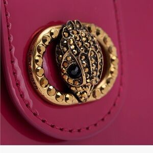 Bold fuchsia mini bag by Kurt Geiger. Features elegant gold detailing. Perfect for a stylish statement. Kurt eiger London