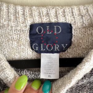 Vintage Old Glory Grey + Cream Colorblock Cable Knit Wool Blend Sweater - XL