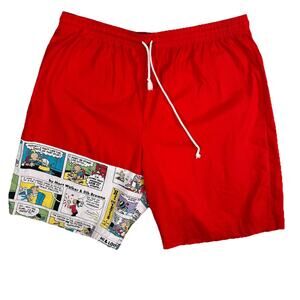 VTG Funnays Comic Strip Shorts Red Men’s Size XL 8” Inseam Elastic Waist