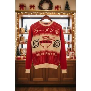 Naruto Ichiraku Ramen Sweater - Red Cream Unisex NWOT Ugly Christmas Style
