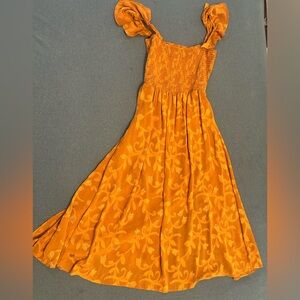 ❤️Lulu’s flutter sleeve smocked midi dress gold/rust
