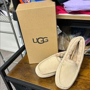 Stylish sand suede moccasins. Soft and cozy interior. Ideal for everyday comfort.