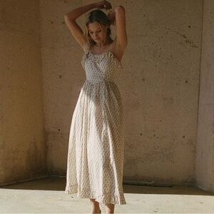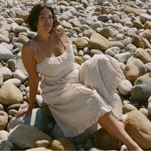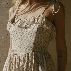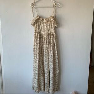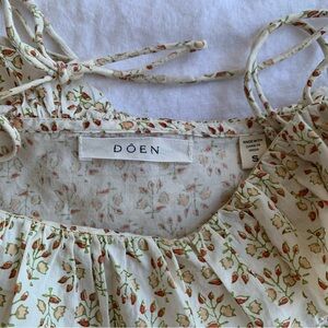 Doen Wendelin Cotton Ruffle Tie Bow Strap Midi Dress Spring Elderberry Floral