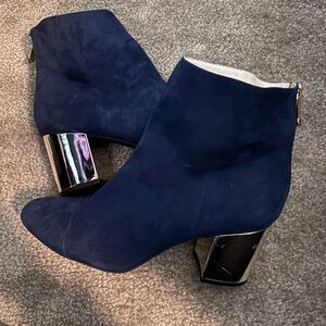1901 Nordstrom Whittaker blue suede ankle boots with a gold heel size 9
