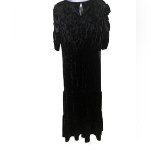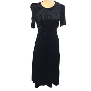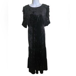 Who What Where Size Medium Black Crushed Velvet Modest Empire Waist Dress Tiered Full Midi Maxi Depending On Height Whimsigoth Vamp Witchy Classic Dark Romantic Fairy Babydoll Vintage Inspired Holiday Ready