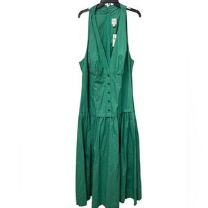 Maeve green midi dress, Anthropologie 3X dress, halter V-neck dress, drop-waist dress, cotton modal dress, NWT Anthropologie.