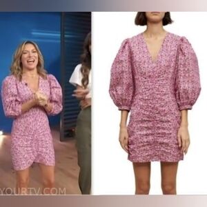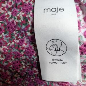 The Maje studio has designed a fresh and sparkling floral print for the new season. This short dress with its feminine lines has a V neckline and voluminous, delicately gathered three-quarter length sleeves.