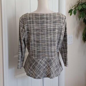 EUC Ivanka Trump Black and White Tweed Peplum Top Size Large