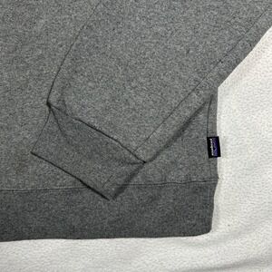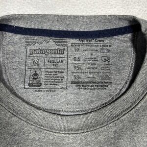 The Patagonia Line Logo Ridge Striped UpRisal Men's Gray Pullover Sweatshirt in medium size is a stylish and versatile activewear piece perfect for outdoor activities like walking and hiking. Made from a comfortable cotton blend fabric with a knit construction, this hoodie features a drawstring closure, adjustable hood, and pockets for added convenience. The classic retro design with the iconic Patagonia logo adds a touch of outdoor-inspired style to your wardrobe, making it a timeless addition to your collection.