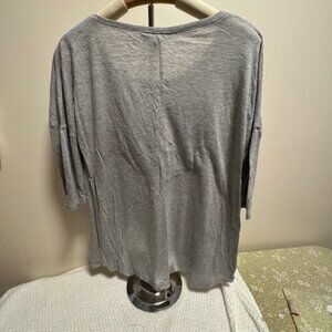 Fit: Appears to have a relaxed, flowing fit with a slight high-low hem.