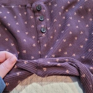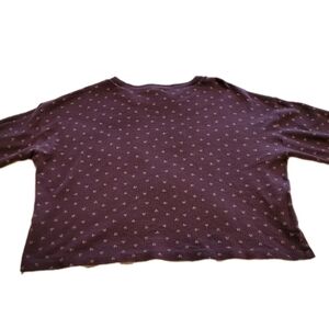 Women's size large waffle knit thermal long sleeve top and pant bottoms. 100% cotton breathable. Pants have extra replacement button. Rib stretch hems. Button detail on pants. Colorway: Micro Berry Chocolate Raisin. 2024