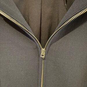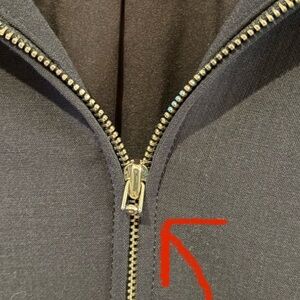 Excellent NWT (New With Tags) — never worn. One minor flaw noted: part of the metal pull tab on the center zipper has come off. Zipper itself is still fully functional. (The next to last picture shows the center zipper and the next picture shows the metal pull it is missing)