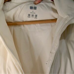 This coat features UNIQLO’s signature seamless design, making it extra warm, lightweight, and great for blocking wind. The ivory color is super versatile and looks great with everything. All zippers, snaps, and pockets are in perfect working order.
