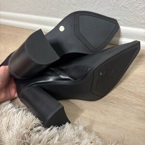 Steve Madden Silvee Black Leather Pointed Toe Block Heel Boots Size 9