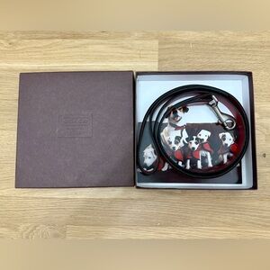 Used a couple of times, leather is in excellent. One of the rivets fell out. Measures 47” end to end and the leash measures approximately 37”. Walk your pup in style!