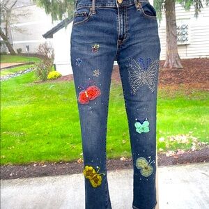 Women’s UPCYCLED HAND CRAFTED GAP Blue Jeans with Butterfly Designs Sz 29/8L
