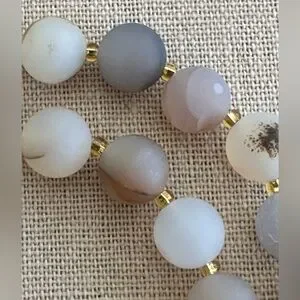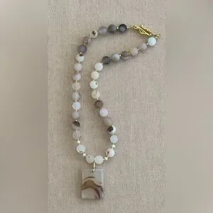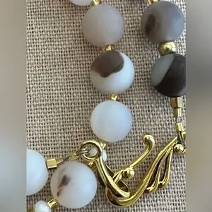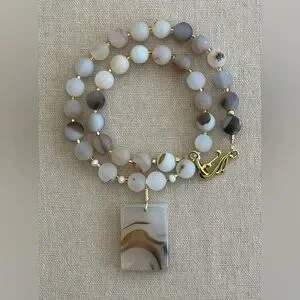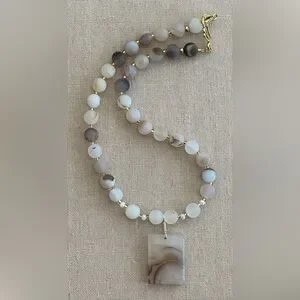 Matte Flower Agate beads Dendritic Agate Pendant Gold seed beads Brass beads Crystal bead spacers Gold Tone Clasp