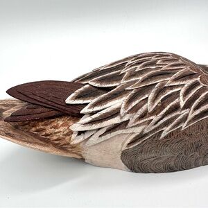 Beautiful fine carving of a Northern Pintail Drake duck from one piece of wood
