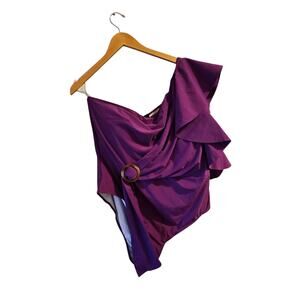 Eloquii purple One Shoulder Cascade Ruffle Swimsuit one piece sz 24 new SW21