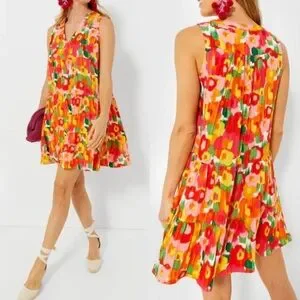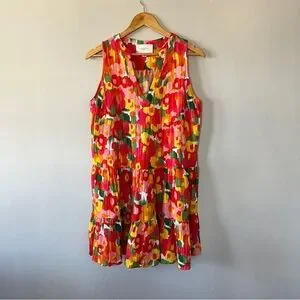 Pomander Place Magnolia watercolor sleeveless Kenzo dress tiered size M