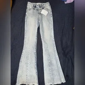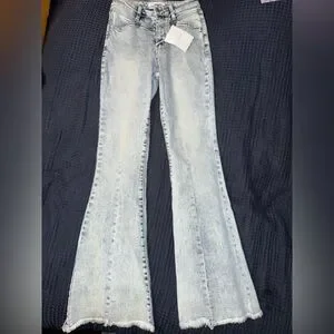 Stylish wide leg jeans with a vintage vibe. Features a frayed hem for a chic look.