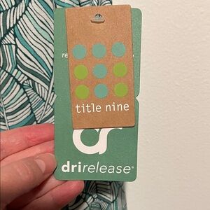 Stylish dress with a green and white geometric design. Made for activity with drirelease technology. Side zipper pocket.