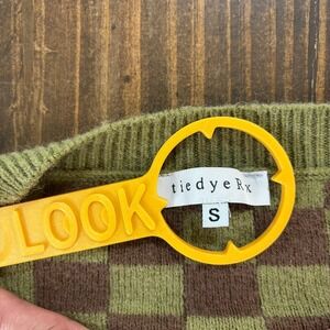 TIEDYERX Womens Sweater Vest Small Green Brown Checkered Knit Cropped V Neck