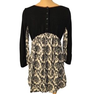 THML Black Cream Damask Contrast Print Long Sleeve fit flare Dress Size Medium