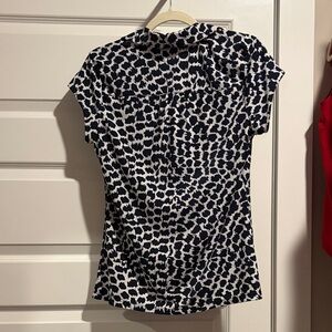 Stylish black and white pattern. Short sleeves with button-down front. Perfect for in-office days with some navy blue slacks. Lightly worn. Great condition.