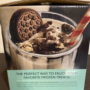 Ice Cream Serving Set - Stainless Steel Spoons ,Scooper and Glass Cups