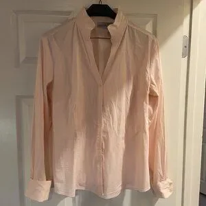 Chico's shirt in soft pale pink with short standup collar and french cuffs
