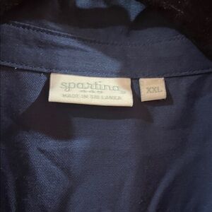 Chic navy maxi dress. Features button-up front and stylish belt. Ideal for versatile wear. Worn 1x. Beautiful embroidered design on hem.