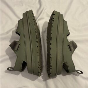 In excellent condition!!! Only sign of being worn is on the bottoms of the soles, nearly flawless! Size 9, gorgeous sage / olive green, “Shaded Clover” platform waterproof velcro chunky sandals.