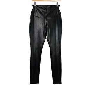 Faux Leather Textured Black Leggings by Yummie, Size L