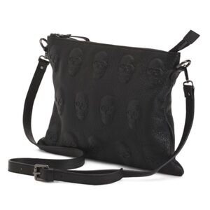 Embossed Skull Heads black leather crossbody Bag by lOpelle Italia. Gothic, punk, grunge vibe!