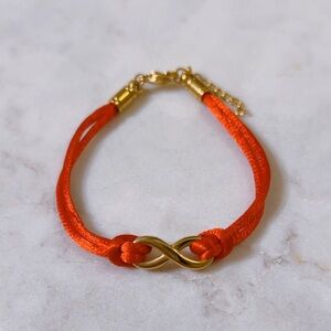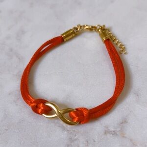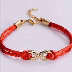 CELINE13 Infinity Charm Bracelet – Red Cord & Polished Titanium Steel