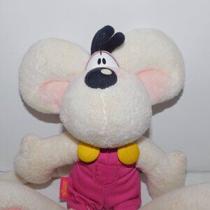 This vintage Thomas Goletz Depesche Germany White Diddle Mouse in Pink Overalls 10" Plush Stuffed toy is in great clean bright condition with tush tag still attached . Measures 10 " from top of head to bottom of feet.