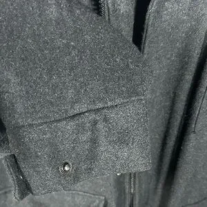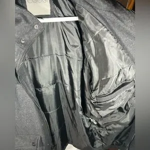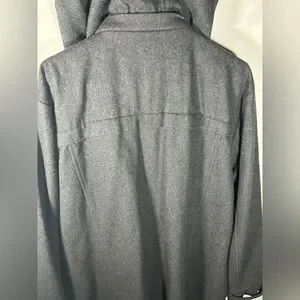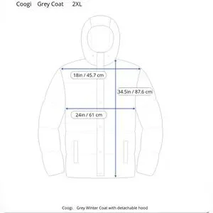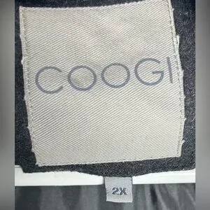 Stylish COOGI jacket with a detachable, zippered hood. Features multiple pockets, zipper and button closure. Button snap cuffs that are adjustable. High neck to keep you warm. Wool blend Ideal for outdoor adventures. Size 2X. Please see photos for fabric content and specific measurements