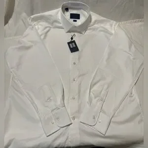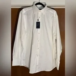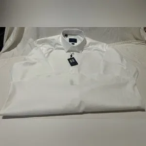 David Donahue White Dress Shirt. 34/35 Sleeves. 17.5 Neck. Trim Fit.