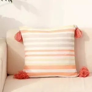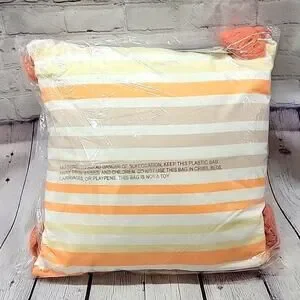 QVC Berkshire Blanket 18x18in Sriped Throw Pillow Orange and Yellow Tones NIB!