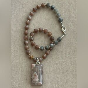 Cherry Blossom Agate pendant and beads