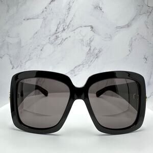 New GUCCI Sunglasses Wrap Square Black Gold Metal GG 55-16-130mm Authentic Gucci