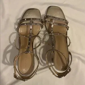 WHBM Cindy Metallic Leather Strappy Studded Block Heel Sandals