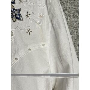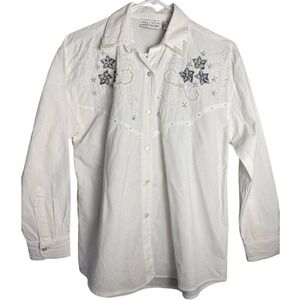 Vintage 80s Retro Floral Pearl Embroidery Button Up Shirt Western Cottage SM/MED