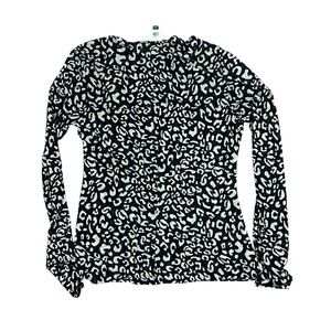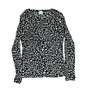 Cabi Blouse Women’s Medium Top Black Ivory Leopard Animal Print Style 4163