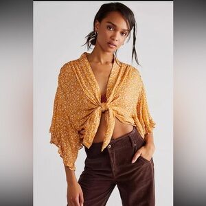Free People Calisto Bed Jacket in Honey/Gold Tie Front Top | NEW/NWOT!!💛💛