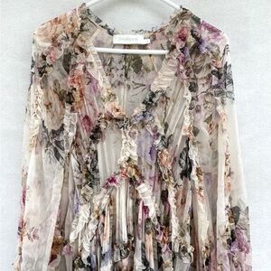 ZIMMERMANN Brighton Frill Billow Floral Georgette Minidress Size AU 2 / US M (8)