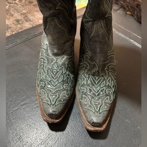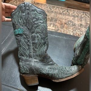 Stylish grey and turquoise cowboy boots with intricate stitching. Perfect for a western look. Worn less than 5 times! Like new.