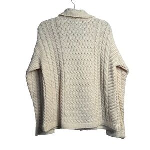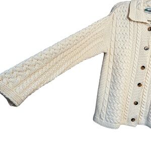 Aran Craft Ireland 100% Merino Wool Cardigan Sweater Chunky Cable Knit Ivory M